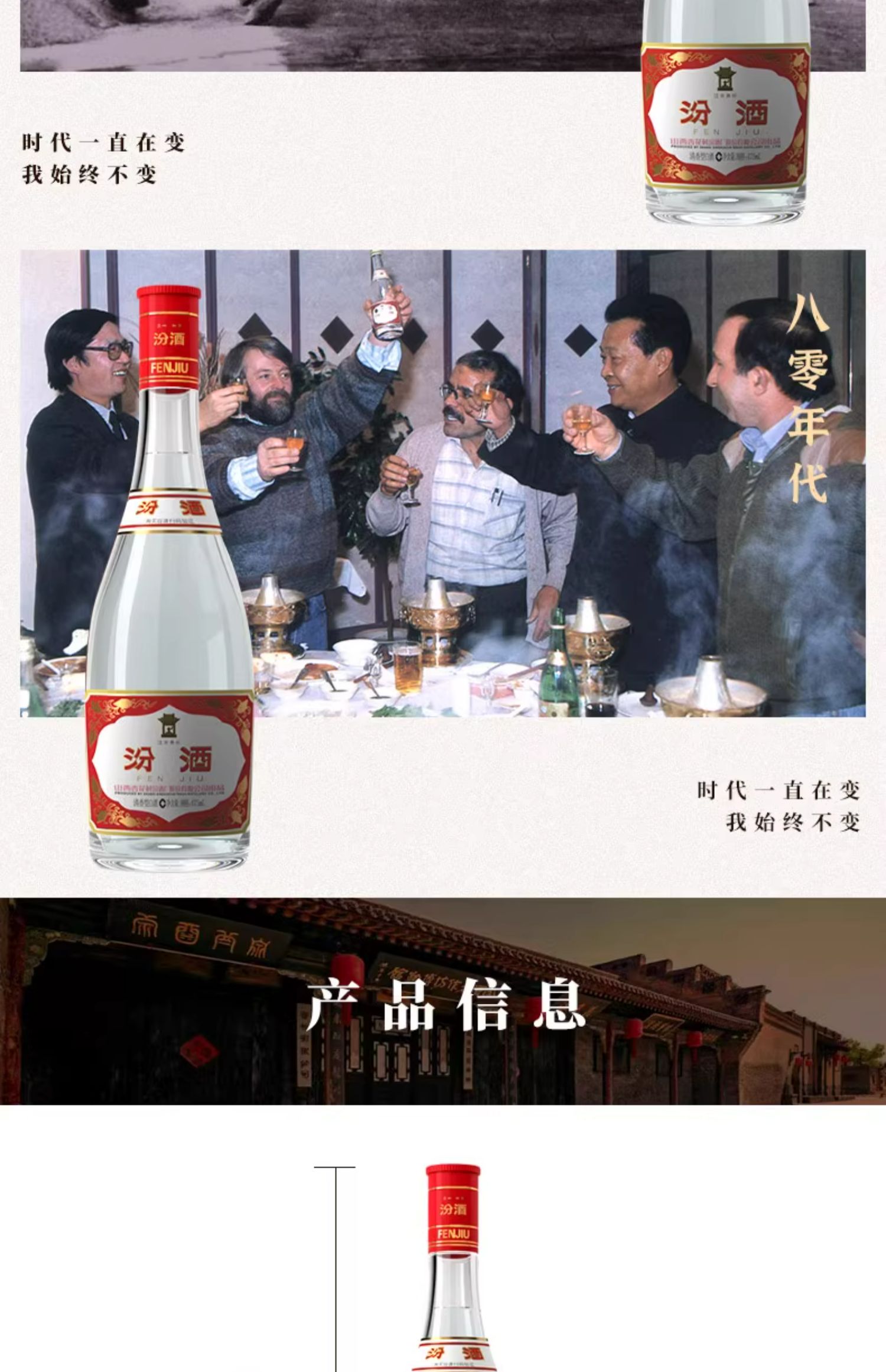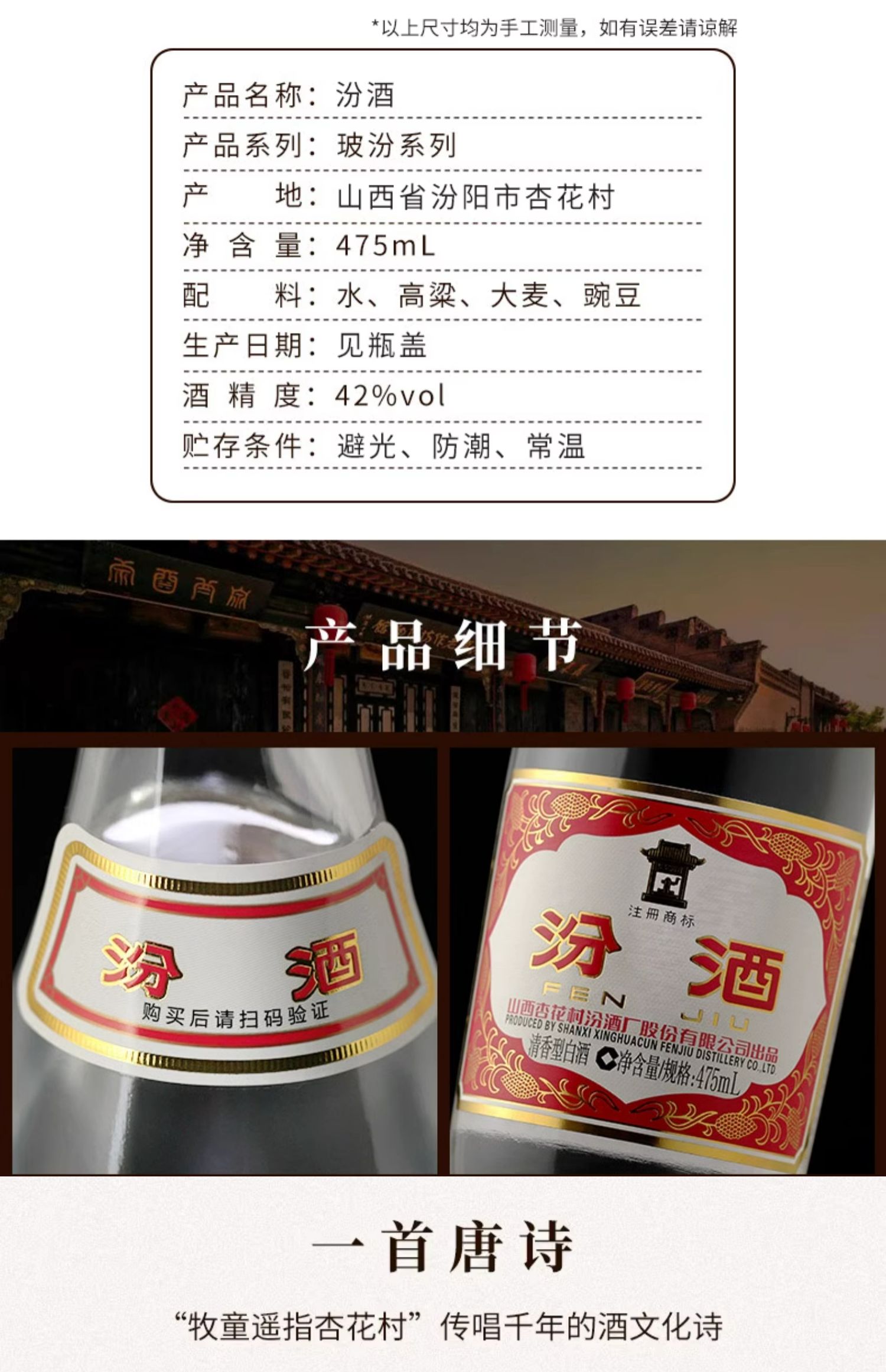 【官方正品】山西杏花村汾酒 42度红盖汾酒475ml*1瓶国产白酒